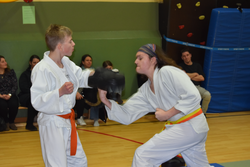 Gefordert waren die kompletten Leistungsprogramme für die Gurtfarben Weiß‑Gelb, Gelb-orange, Orange und Grün. Die Prüflinge zeigten dabei ein breites Spektrum an Techniken – von Bewegungslehre und Falltechniken über Abwehr- und Hebeltechniken bis hin zu komplexeren Kombinationen. Besonders beeindruckend war, mit welcher Ernsthaftigkeit selbst die jüngsten Teilnehmenden ihre Aufgaben meisterten.